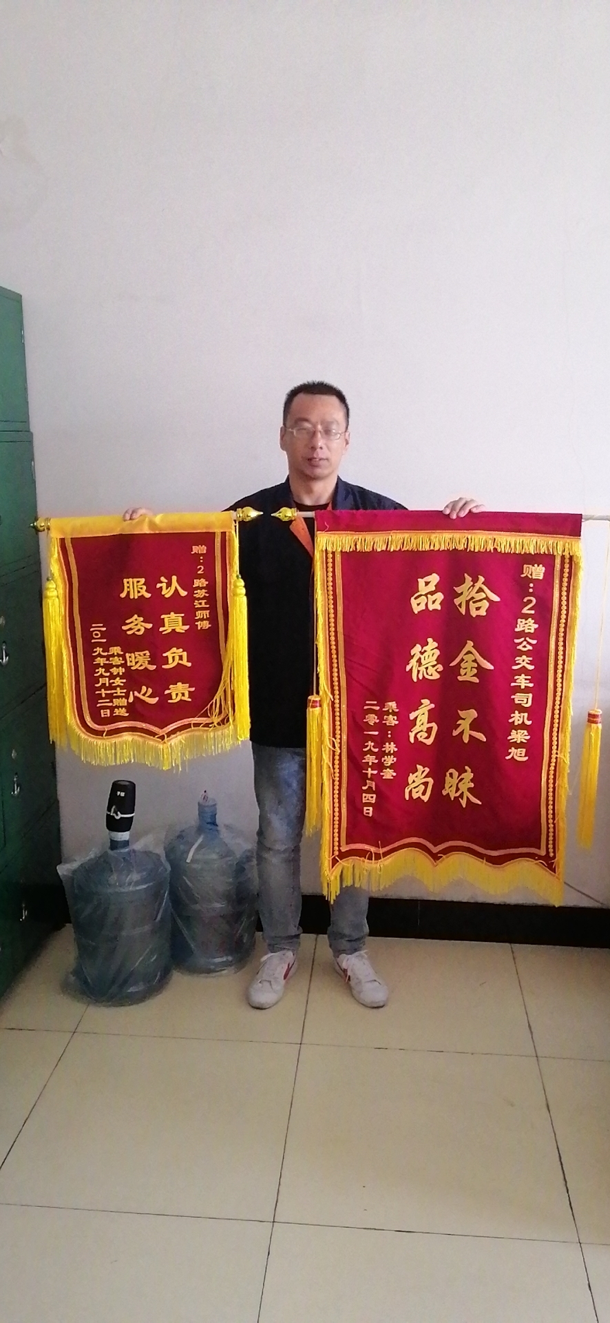 10月2日,乘客鐘女士到公交2路線(xiàn)師范學(xué)院調(diào)度室將寫(xiě)有“認(rèn)真負(fù)責(zé)、服務(wù)暖心”的錦旗贈(zèng)與駕駛員蘇江師傅。 9月12日上午,鐘女士帶孩子從師范學(xué)院乘坐2路車(chē)去站前火車(chē)站,在乘車(chē)過(guò)程中鐘女士的乘車(chē)卡由孩子拿在手中玩耍,下車(chē)時(shí)孩子卻將乘車(chē)卡塞進(jìn)后門(mén)兩個(gè)玻璃的夾縫中,一時(shí)間無(wú)法取出來(lái),而此時(shí)已臨近火車(chē)發(fā)車(chē)時(shí)間。正當(dāng)鐘女士不知如何是好的時(shí)候,駕駛員蘇江師傅告訴鐘女士不要著急讓她放心出門(mén),承諾等晚上下班后幫她取卡。在晚上收車(chē)后蘇師傅小心翼翼地把卡從細(xì)縫中取出來(lái),在第二天將乘車(chē)卡交由師范學(xué)院2路調(diào)度室調(diào)度員保管,并告知鐘女士:“等你出門(mén)回來(lái)找調(diào)度室取乘車(chē)卡就行”。10月2日鐘女士回鞍以后,在調(diào)度室取回乘車(chē)卡。 |